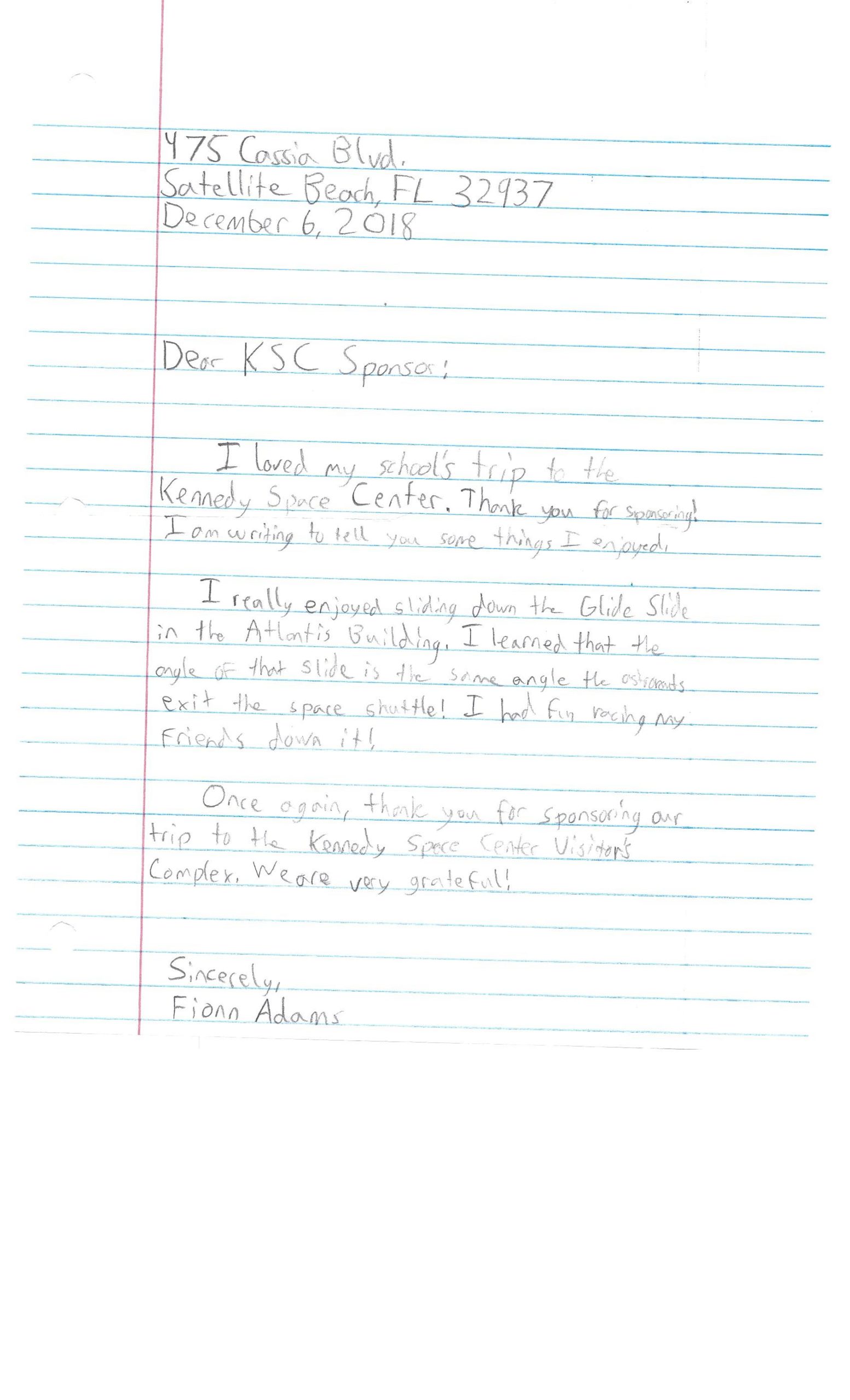 Jim Kennedy’s school visits are made possible, in part, thanks to the generous contributions of the KSC Visitor Complex.
